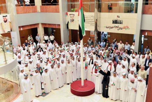 حضر الفعالية سعادة محمد سالم الظاهري رئيس مجلس الإدارة و السيد عبدالله الشرياني مدير عام شركة العين للتوزيع بالإنابة وعدد من مدراء الإدارات و الأقسام ورؤساء الشعب أمام المبنى الرئيسي للشركة عند الساعة الحادية عشر ظهراً لرفع سارية العلم عالياً تزامناً مع جميع المؤسسات و الهيئات و الدوائر الحكومية في جميع إمارات الدولة ، تلبيتاً لدعوة سمو الشيخ محمد بن راشد حفظه الله ورعاه .